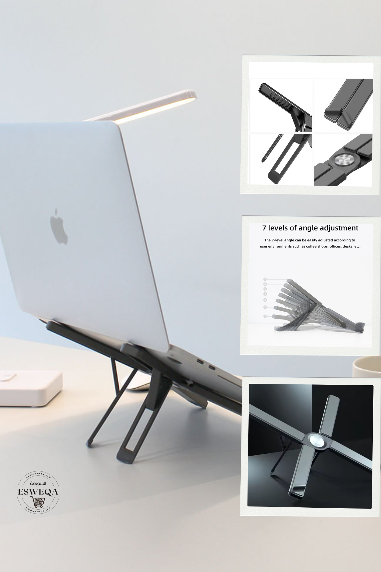 7 niveaux de hauteur réglables pour positionner l'ordinateur portable à la hauteur des yeux souhaitée.Emportez-le facilement au travail, pour étudier, en voyage ou pour travailler en extérieur.